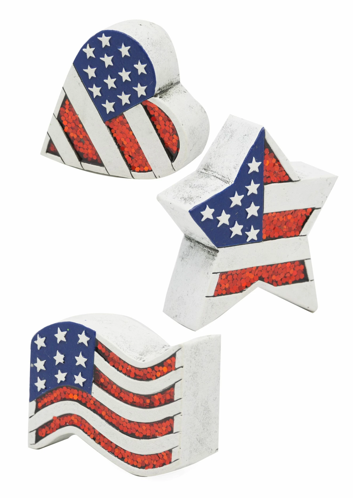Show your patriotism with these decorative stones. Features glittery color accents that catch the light which makes them sparkle during the day.