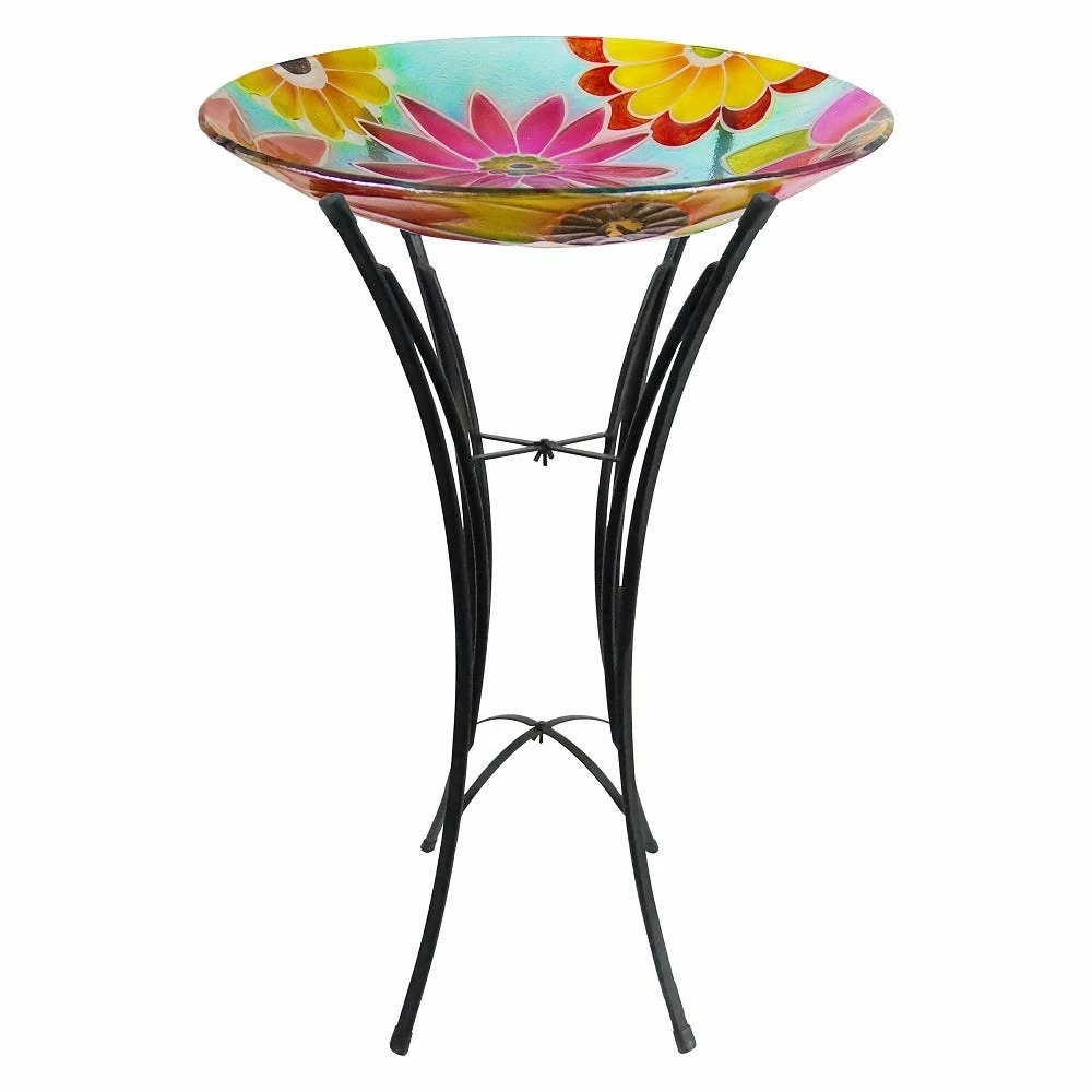 - Features Glass Birdbath
