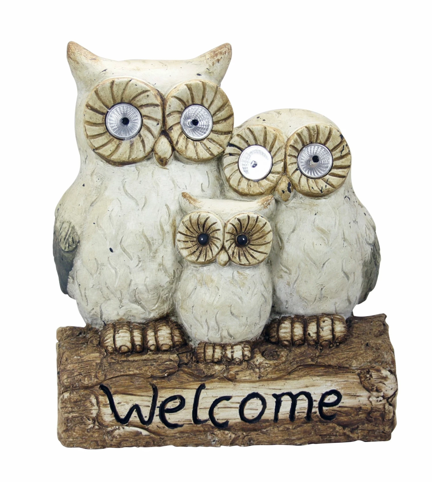 This solar owl statue is the perfect addition for any outdoor space. The friendly owls will welcome your house guests day or night. The mother and father gaze out from their perch with 2 bright LED lights each.