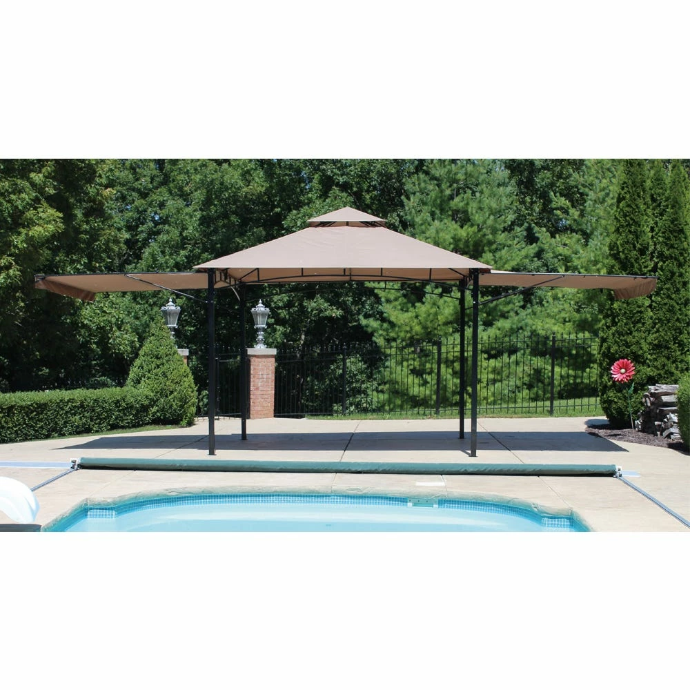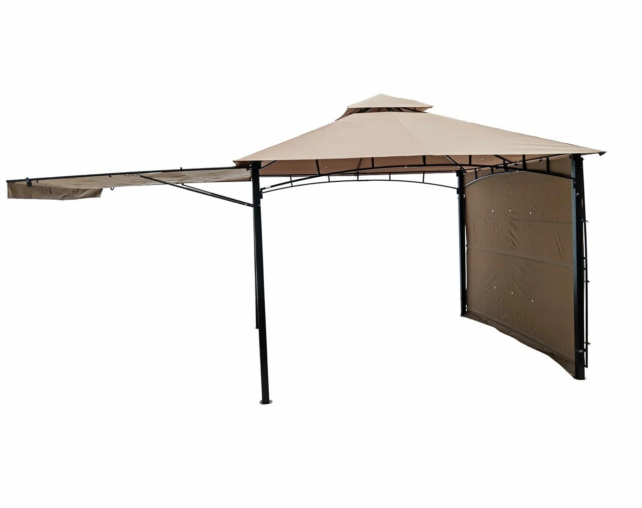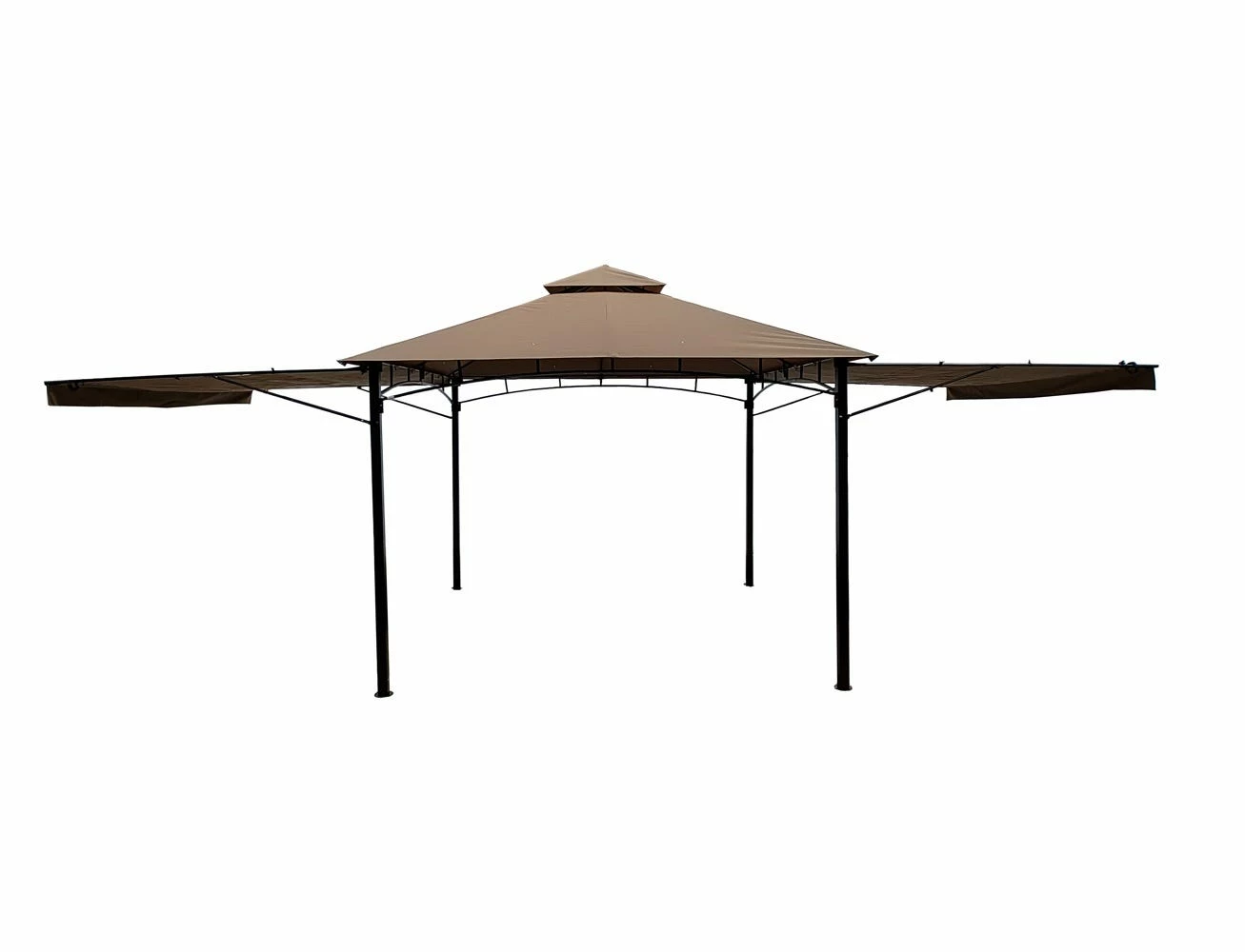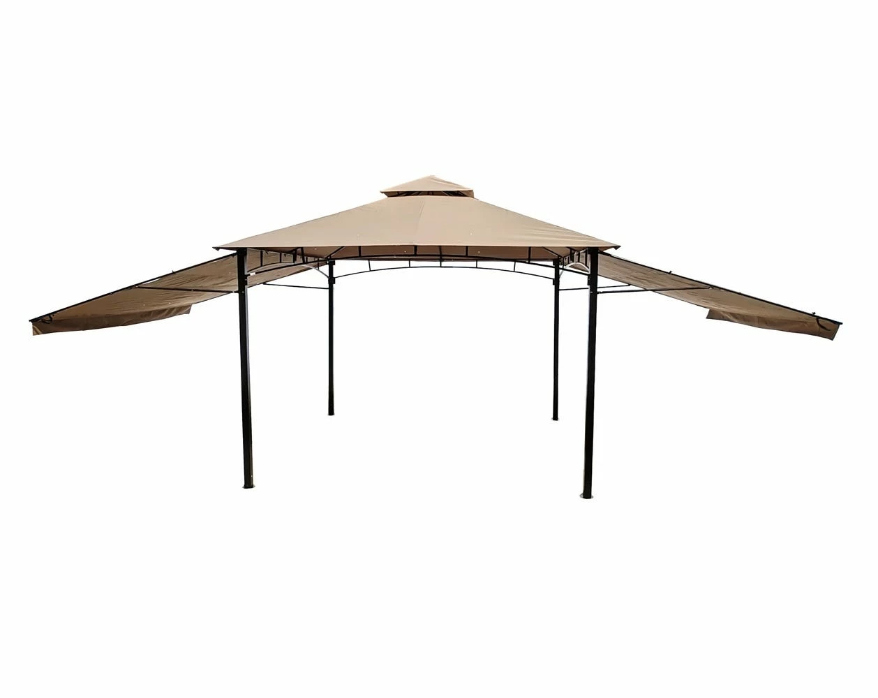 The Backyard Expressions 10′ x 10′ Gazebo with Extending Sides is an outdoor entertaining dream. It Creates a vast shaded area for the whole party to gather in. The wings on the gazebo can be moved to a variety of different positions, making this the ideal gazebo for any area. The canopy is made with weather resistant canvas and features a vented roof. Built with sturdy, durable powder coated steel frame. You get all this without having to use any tools for assembly! Get yours today!