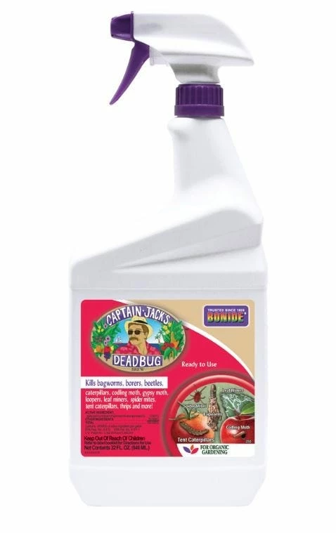 Captain Jack’s Deadbug Brew is approved for organic gardening to control a wide range of listed insect pests. Use on listed vegetables, citrus, fruits flowers, and ornamentals. Contains Spinosad®. This pest control is great for use on bagworms, borers, beetles, caterpillars, codling moth, gypsy moth, spider mites, loopers, leaf miners, tent caterpillars, thrips and more. Product is intended for control of listed insects. It does not significantly impact predatory beneficial insects, predatory mites, and spiders while controlling target pests.