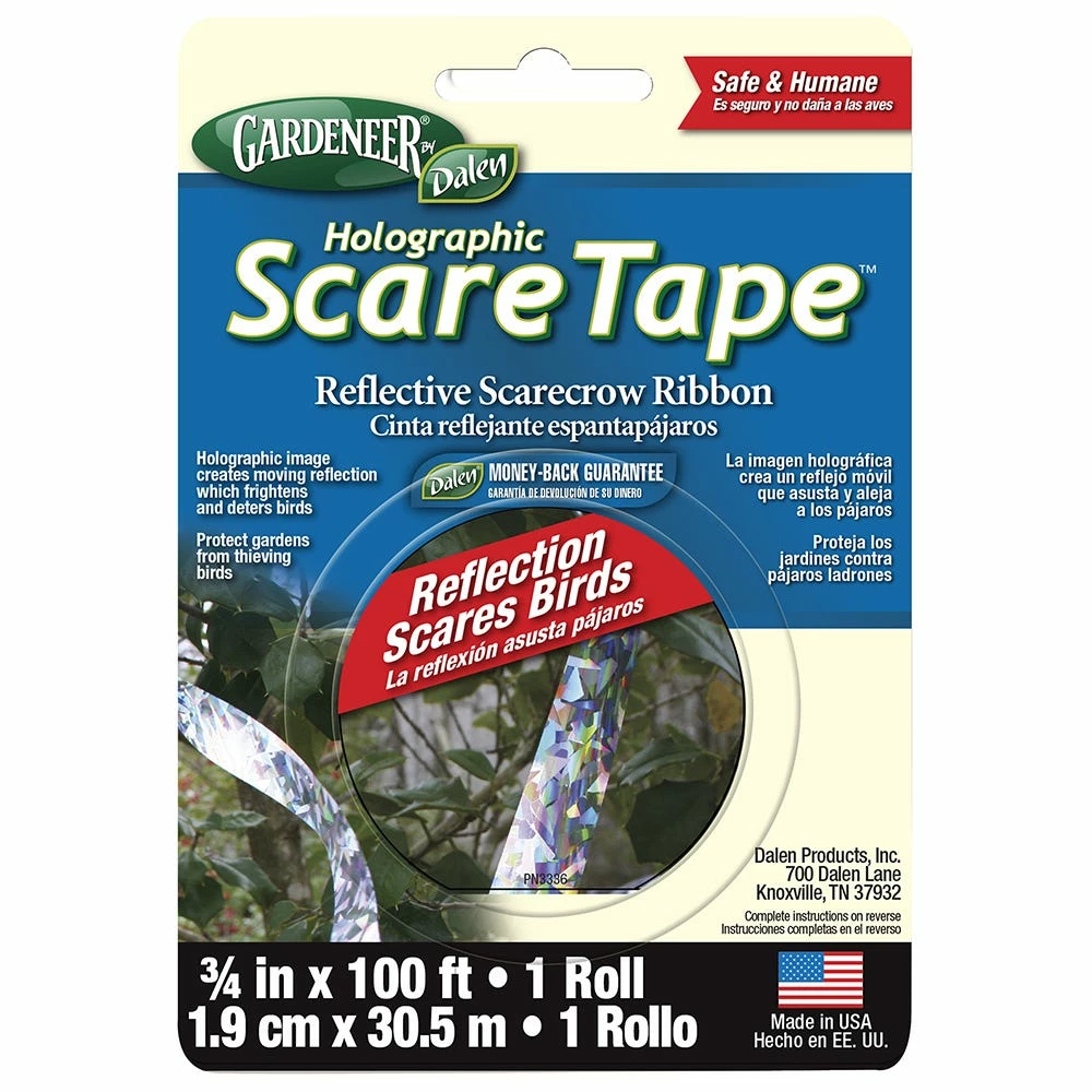 - Reflective scarecrow tape with “moving” holograms that flash dramatically in the sunlight