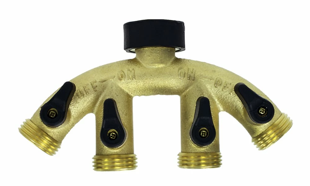 Water up to four different areas of your lawn or garden at once. Simply attach the heavy-duty brass valve to a faucet and connect up to four hoses for more efficient watering all over your yard. Allows 35% more flow than standard valves, so all four spigots will deliver the same optimal water volume to attached hoses, sprinklers or nozzles.