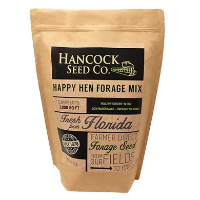 Hancockβs Happy Hen Forage Mix is designed for those who love to spoil their flock of fowl! This healthy blend is designed to be planted very easily for chickens to forage on and increase their intake of xanthophylls and omega 3. Backyard chicken keepers know that healthy chickens produce bright orange yolks as this is a sign of a happy and healthy hen. By giving your chickens plenty of Hancockβs greens you will start seeing this change in the yolks and even a denser, harder eggshell. Orange yolks are a clear indication of a well balanced and highly nutritious diet. Recent studies show chickens that free range or forage on proper elements produce eggs with higher levels of vitamin A, D and E and much more. Hens that produce this quality of eggs is what you want to be feeding to your family.