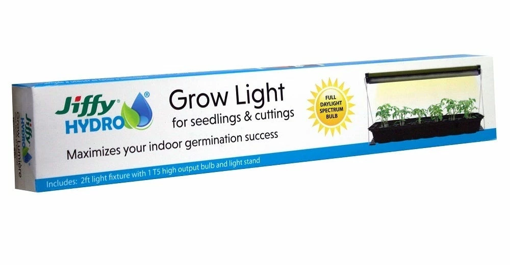 Ensure your plants get the best start possible by helping them grow heathy and strong with this Jiffy Hydro Grow Light Kit. It maximizes your indoor germination success. Includes 2 foot light fixture, T5 high output bulb and light stand.