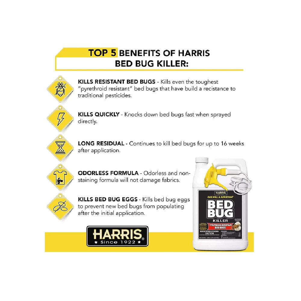 Harris Black Label Bed Bug Killer Kills Resistant Bed Bugs & Their Eggs – Kills even the toughest “pyrethroid resistant” bed bugs and eggs that have built up a resistance to traditional pesticide. Quick kill knocks down bed bugs fast when sprayed directly and long residual continues to kill bed bugs for up to 16 weeks after initial application. Odorless and non-staining formula will not cause damage to fabrics when used according to label directions