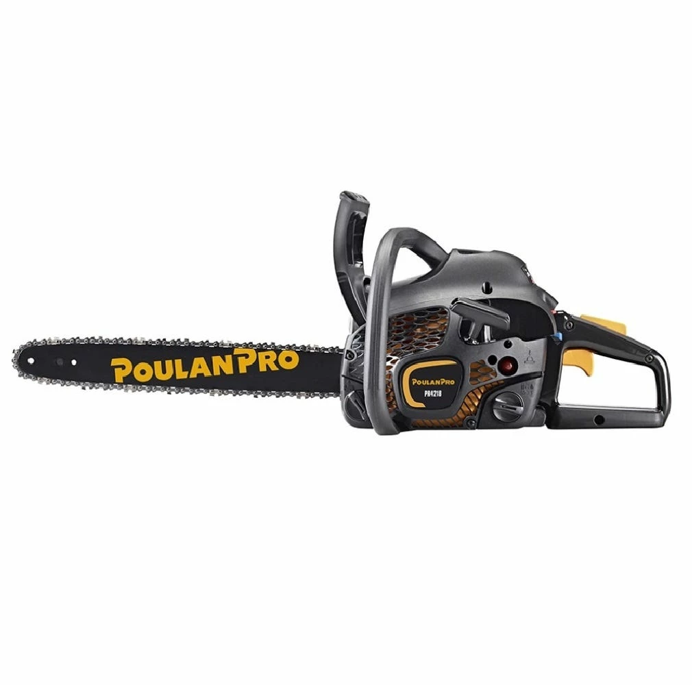 Powered by an impressive 42cc, 2-cycle engine, the Poulan Pro PR4218 chainsaw with 18 in. bar is ideal for medium-duty storm clean-up, cutting firewood, and felling trees. It’s equipped with patented OxyPower® technology for incredible power, efficient fuel consumption, and reduced harmful emissions, as well as Effortless Pull Starting (EPS) with a spring-assisted pull cord and easy-to-use purge bulb for fast, simple starts with less pulling effort. This lightweight chainsaw is packed with additional features like our very own Superclean® air filter system for long air filter life and reduced fuel consumption with no sacrifice of power. It also features an automatic gear-driven oiler that keeps bar and chain lubricated, reducing wear and minimizing maintenance needs. With an ergonomic design with advanced anti-vibration system for superior comfort and minimal user fatigue, and easily accessible controls, this model chainsaw is easy to start and easy to operate with plenty of power for any task.