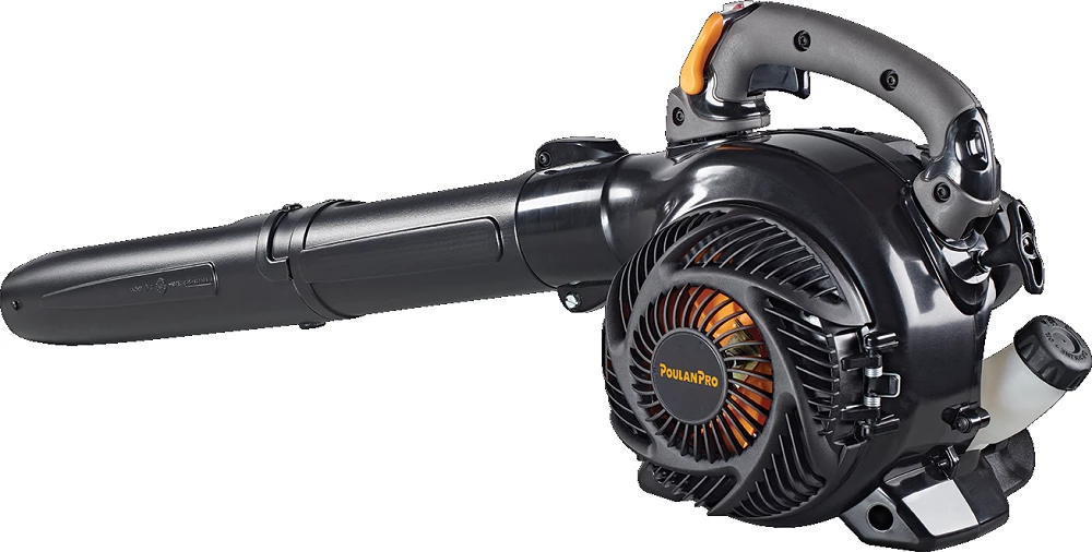 Equipped with a 26cc two-cycle engine, the Poulan Pro PRB26 gas-powered blower is capable of 200 mph air speed and 470 cfm airflow, it’s ideal for year-round clean-up of grass, leaves, and other stubborn debris. With cruise control, trigger-operated variable speed control, reduced vibration technology, and comfortable, soft-grip handle, this lightweight blower is powerful, versatile, and easy-to-use.