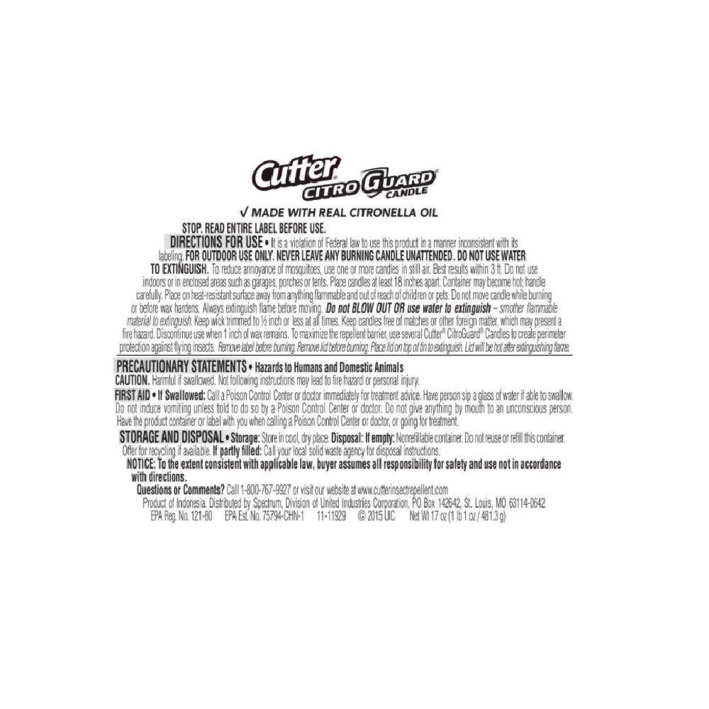 Goodbye, mosquitoes. Hello, summer. Cutter brand, has been helping families have fun outdoors for more than 50 years. Whether you’re headed to the next big game or kicking goals in the backyard, Cutter insect repellents offer mosquito protection for the entire family as well as innovative solutions designed to help keep the whole backyard free of bugs. Cutter Citro Guard Candles repel mosquitoes and other flying insects. Each candle burns up to 30 hours and is made with real citronella oil for protection that lasts. Worry less about pesky bugs and spend more time enjoying your outdoor space. You will love the classic silver color of this candle, which complements your patio decor while providing hours of protection. Maximize the repellent barrier by using several Cutter Citro Guard candles to create perimeter protection against flying insects.