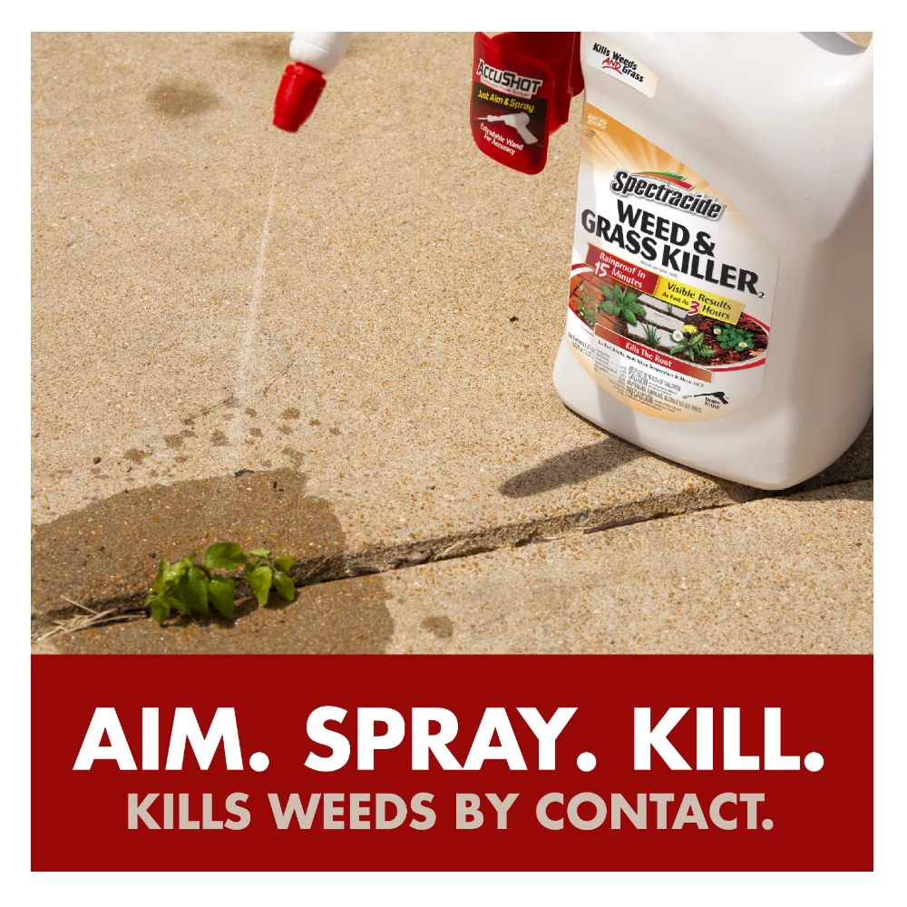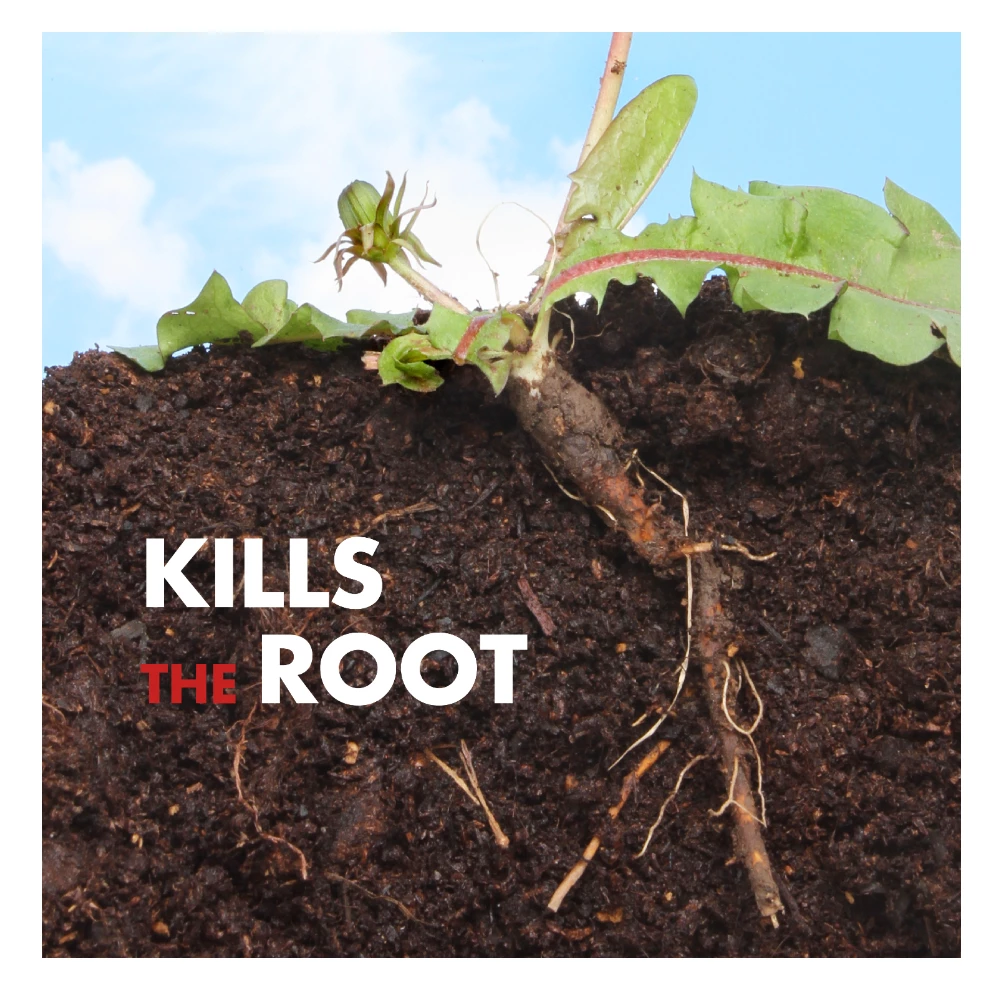 This product is a non-selective herbicide that will kill any vegetation contacted. It enters plants through the leaves and moves down to the roots. This will ensure that the entire plant is eliminated. Avoid direct spray or drift onto desirable plants, lawn grasses, shrubs, and trees. Protect desirable plants and vegetation with a piece of plastic or cardboard. If desirable plants are accidentally sprayed, wash plants with water immediately.
