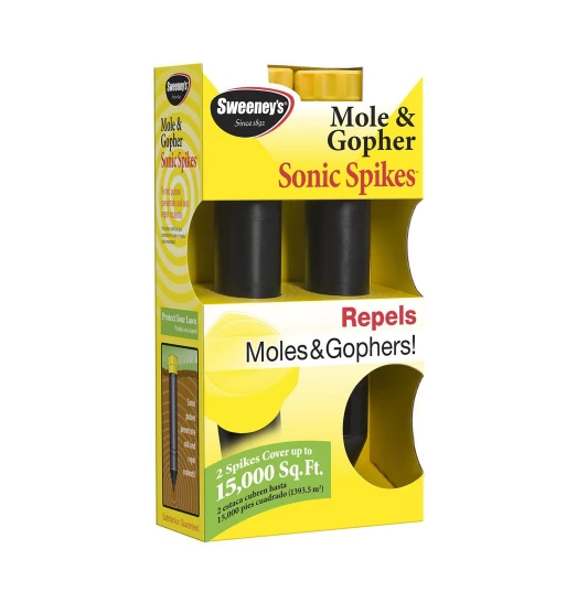 Safely send moles and gophers scurrying from your yard unharmed with this Sonic Spike. When placed in the ground and activated, sonic pulses penetrate the soil, emitting a sound that is highly irritating to moles and gophers who are virtually blind and sensitive to sound and vibrations. Climate permitting, leave the Sonic Spike in the ground to repel new generations of pests. This spike is designed with a convenient removable battery sleeve for trouble-free battery replacement. One spike will work for 4 – 6 months on one set of alkaline batteries. Spike must be used continuously for 7-14 days before moles and gophers start to move away from the area.