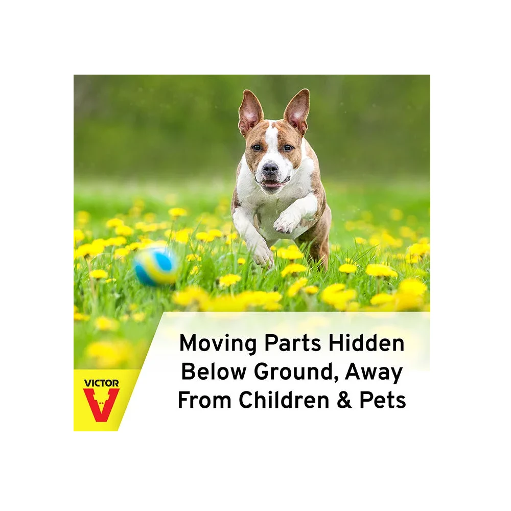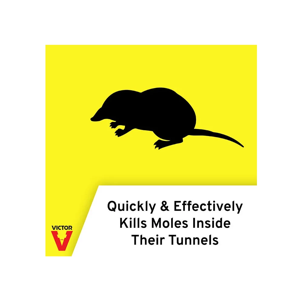 Get rid of destructive moles and protect your yard with this durable, weather-resistant mole trap. As the professional’s trap of choice, the Victor® OUT O’SIGHT® Mole Trap is backed by years of proven field results. The trap effectively kills moles without the use of chemicals or poisons. The OUT O’SIGHT® mole trap features malleable iron jaws for superior strength and durability (setting levers are included). It comes fully assembled and with a sure-fire design for use in any soil type and is ideal for sandy soil. Additionally, the OUT O’SIGHT® trap is equipped with a safety clip for secure operation. Each trap comes with illustrated operating instructions on setting and placement. Ideally, this mole trap should be placed into the tunnel and covered with dirt. It is because of this placement that traps works best for moles, since their natural instinct is to reopen the tunnel. In clearing the tunnel, they will push up on the trigger, releasing the powerful trap. Spring is the best time to trap moles because newly-made surface tunnels are easy to spot. However, moles can be trapped during any season except in very cold or dry weather.