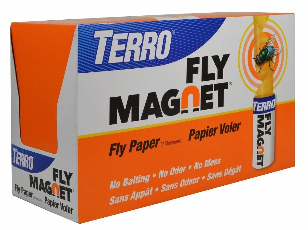 TERRO® Fly Paper requires no baits and is odorless. That means you can hang this trap anywhere that flies and flying insects are a problem. This mess-free insect trap can be quickly disposed of once it fills with flies. Each package contains 4 TERRO® Fly Paper traps.
